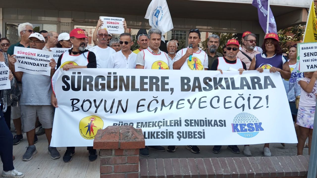 “كونفدراسيونوموزه باگلي بورو ايمكچيلري سنديكاسي باليكسير شوبه سكرتري مهمت ايمين بيشيريجی إیله بيرليكته اويلريميز موستافه قرەتپه و دريه كوموش ايدرميت إیشكور’ده كورو ياپماكته إیكن، كنديلرينين ريزاسي ديشينده و هيچبير ماكول كركچه كوستريلمكسيزين، كايفي بير شكيلده إیشكور بانديرمه هيزمت مركزينه و باليكسير إیل مودورلوگو’نه سورسيز و هوكوكسوز بير شكيلده كورولنديريلميشلردير.بی كايفي و هوكوكسوز اويكولامه يالنيزجه إیلكيلي اركاداشلاريميزي دگل، توم كامی ايمكچيلريني و سنديكال هاكلاري هدف الان بير ياكلاشيمين اورونودور. كورولنديرمنين، هوكومت تارافيندان“ايله ييلي” اولاراك إیلان ايديلن بير دونمد، ايله بيرليگيني پارچالاياجاك شكيلده ياپيلماسي ده مانيداردير. بی قرەرين هوكوك، ويجدان و إینسانلق دگرلريندن نه دنلي اوزاك ‏اولدیگی ده اچيكتير. اركاداشلاريميز ييلاردر بوراده ‏موضوعات چرچوسيند، نيتليكلي كاموسال هيزمت اورتمه كايسينده اولان ديگر ايمكچيلرله بيرليكته فداكارجه چاليشميشلار، باشته پاندمي دونمي اولماك اوزره هر دونم كورولريني ڭ ‏ایی شكيلده ياپمه كايرتينده ‏اولدیلار.