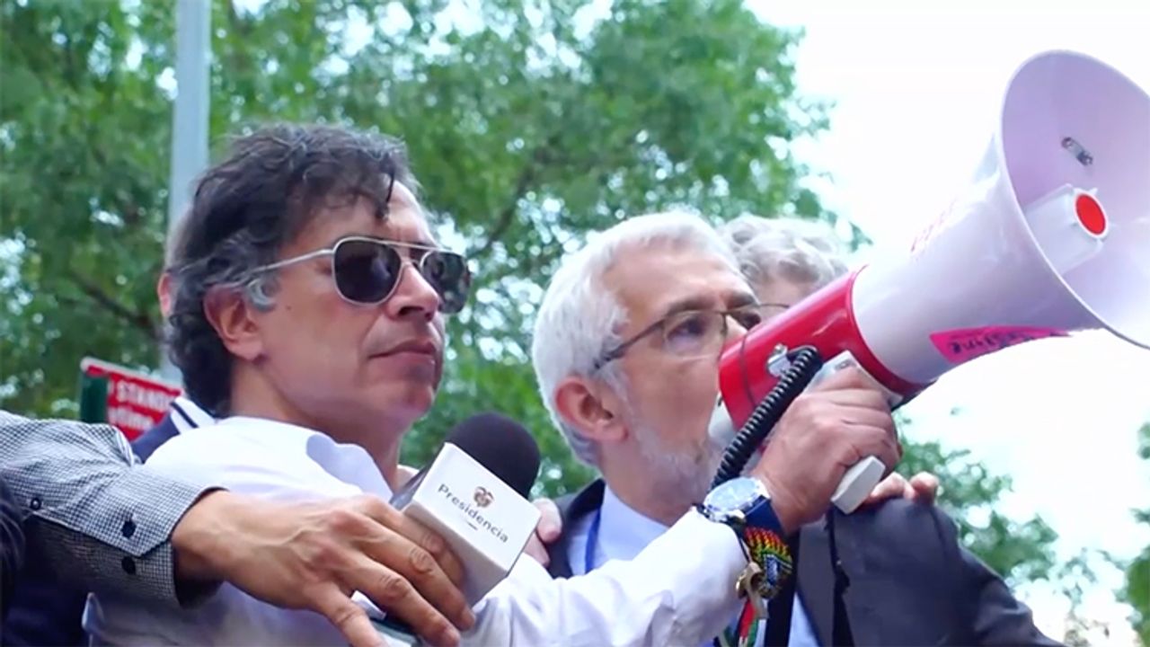 كوستاوو پترو و پينك فلويد’ون كوروجولاريندان إینكيليز موزيسين روكر واترس، تيمس مايداني’نده كرچكلشتيريلن فيليستين’ه دستك، إیسرايل’ي پروتستو اييلمينه كاتيلميشتي.