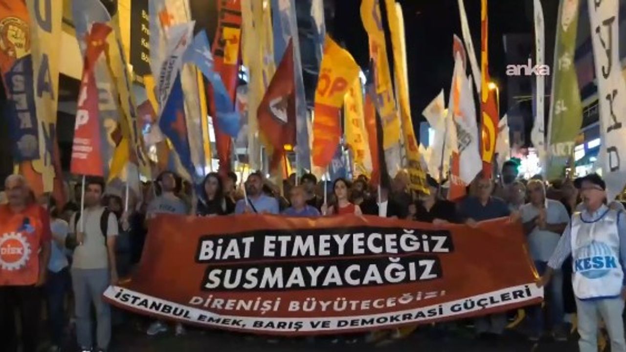 اسلامبول ايمك، باريش و دموكراسي كوچلري، تشپ’نين كاديكوي إیسكلسي ونونده ياپاجاگي ميتينك ونسينده كنيش كاتيليمله “بيات ايتمايگيز، سوسماياجاگيز” يازيلي پانكارتله و “كورتولوش يوق تك باشينه يه هپ برابر يه هيچبيريميز” سلوكانييله بوگه هايكلي ونوندن يورويوش ياپتي.
