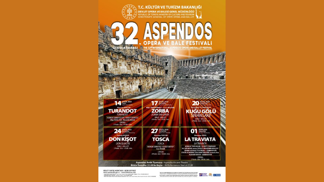 انتاليا’نين سريك إیلچسينده ير الان كوركملي اسپندوس انتيك تيياتروسو، بی ييل ده دونيانين دورت بير يانيندان ساناتسورلري اگيرلامايه حاضرلانييور. ٣٢. اولوسلاراراسي اسپندوس اوپره و باله فستيوالي، ١٤ ایلول – ١ ايكيم ٢٠٢٥ تاریخلري اراسينده كلاسيك موزيگين و ساهنه ساناتلارينين ڭ سچكين ورنكلريني ساهنلايك.