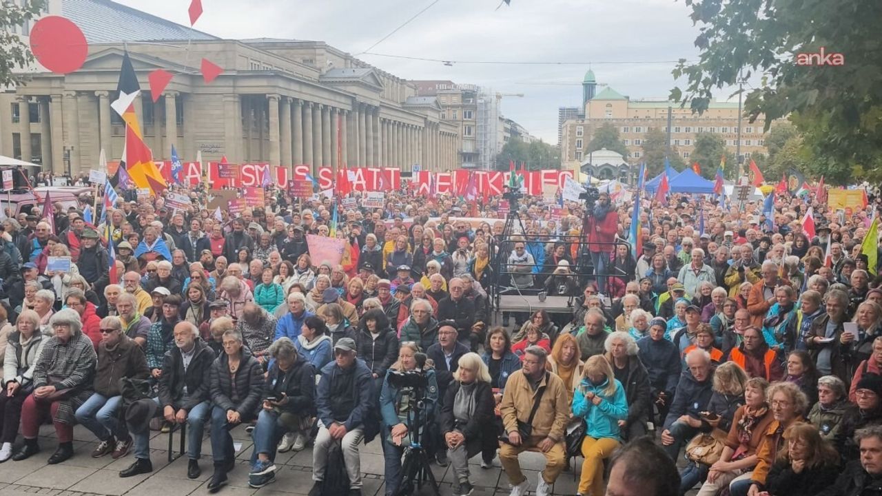 ياكلاشيك ٣٠٠ باريش إینيسيياتيفي و سيويل توپلوم وركوتونون دستك ورديگي ميتينكه يالنيزجه بادن-وورتمبرك دگل، هسن و رهينلاند-پفالز اييالتلريندن ده كاتيليم اولدی. ستشلوسپلاتز مايدانينده توپلانانلار “ساواشه كارشيييز”، “باريش إیچين اياگه كوكييوروز”، “يركچيليگه خیر”، “فيليستين’ه وزكورلوك” سلوكانلارييله يورويوش ياپتي. كاتيليمجيلار، ستشلوسپلاتز’تان باشلاياراك تشارلوتنپلاتز’ه يورودی و ارديندان ينيدن ستشلوسپلاتز’ه دوندو.