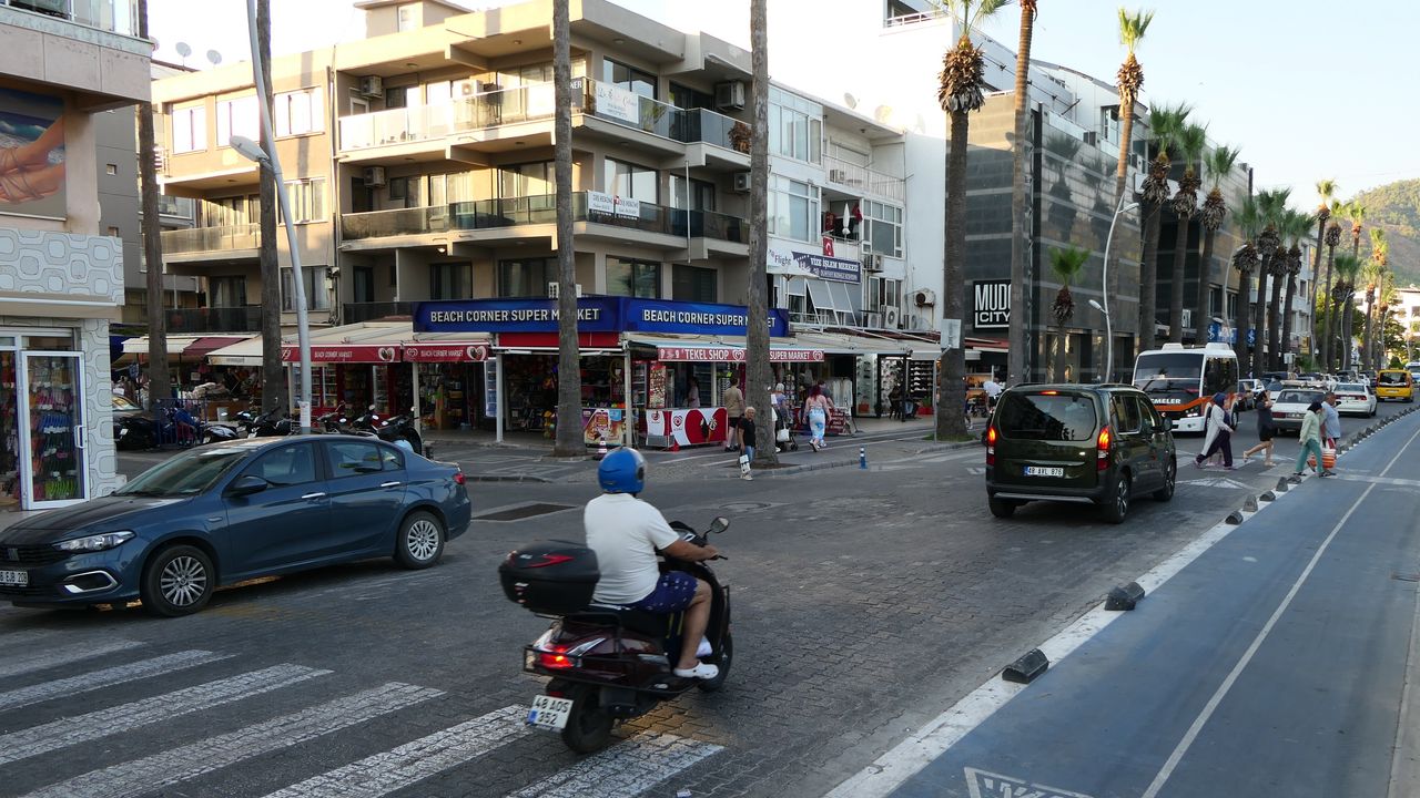 موگله گنلي إیلچلرده ياشانديگي وارساييلان، شهيريچي اراچ و يايه ترافيگي كاريشيكليگي بير ان ونجه چوزولملي. مارماريس’ إین انه ترافيگيني چكن ڭ يوگون يولی اتاتورك جادسي إیله هاسان إیشيك جادسينين باشلانكيجي اولان كسيشمه نوكتاسينداكي، بيري بيرينه اوزاكليگي سادجه ١٥ –