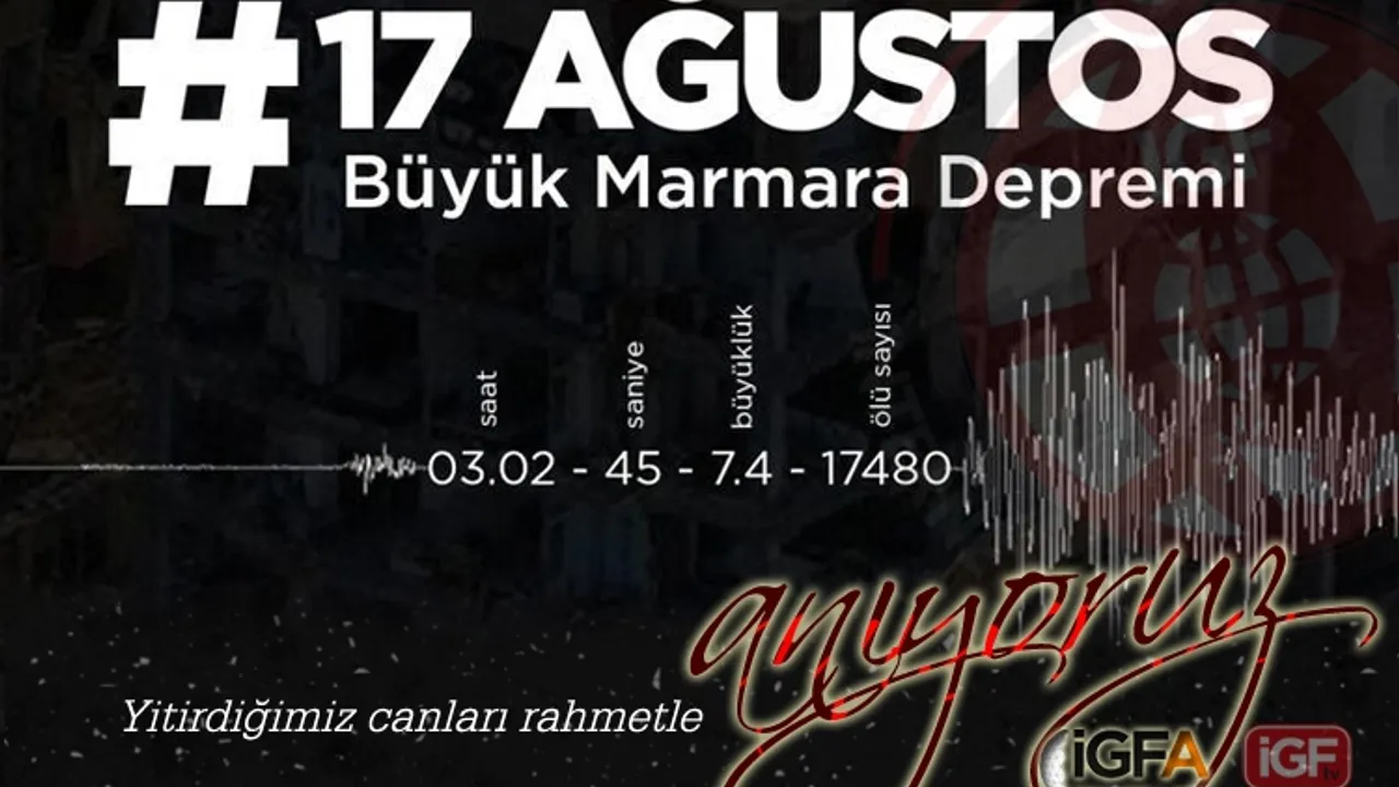 وزتله ١٧ آغستوس ١٩٩٩ دپرمي، سادجه مارماره بولكسي’ني دگل، توم توركيي’يي دريندن ايتكيلاين بير فلاكت اولاراك هافيزالارده يريني كورويور.