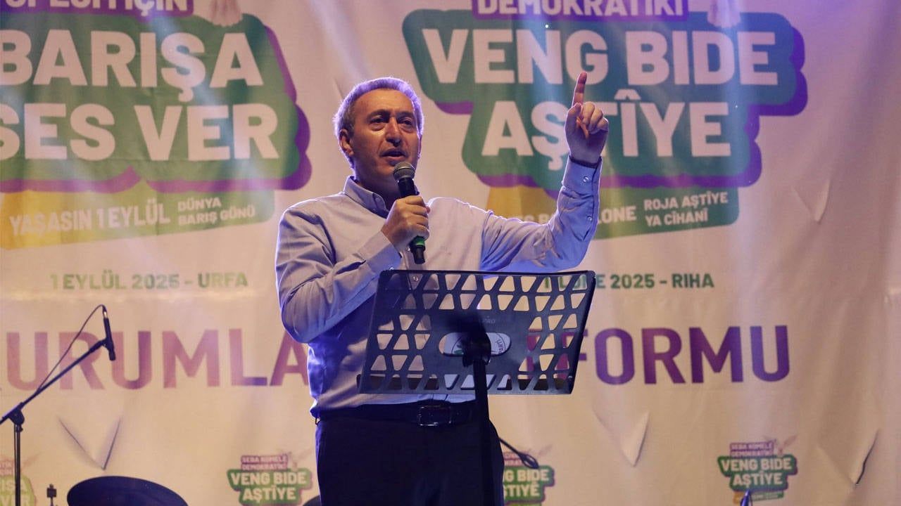 هوكلارين ايشيتليك و دموكراسي پارتيسي (دم پارتي) ايش گنل باشقاني تونر باكيرهان، ١ ایلول دونيه باريش گونی ندنييله شانليورفا’ده دوزنلنن ميتينكده كونوشتو.