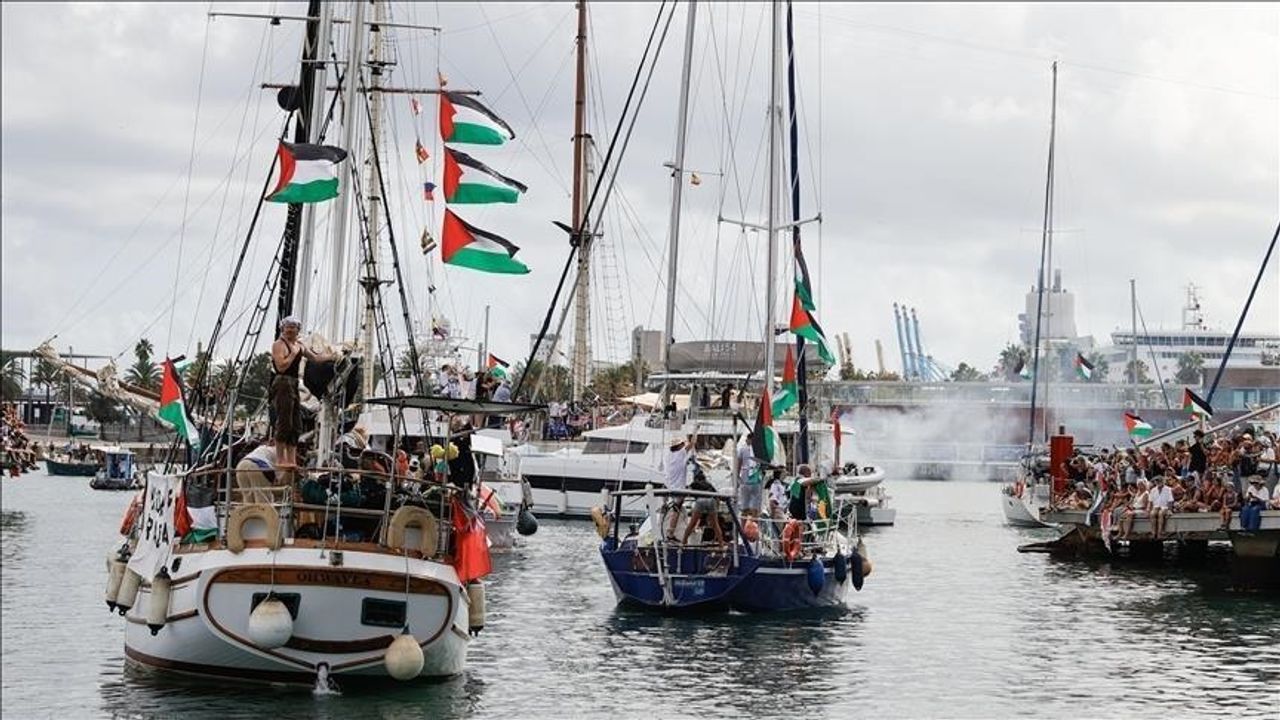 فيليستين إیله دايانيشمه و إیشكالجیلرين ابلوكاسيني كيرماك إیچين ٥٠ كادار اولكنين دستگييله كورسل سومود فيلوسی (كلوبال سومود فلوتيلا) ادييله اولوشتورولان اولوسلاراراسي سيويل يارديم فيلوسونه باگلي تكنلر، ٣١ آغستوس’ته إیسپانيا’نين برسلونە كنتيندن كازز’يه دوگری يوله چيكميشتي.