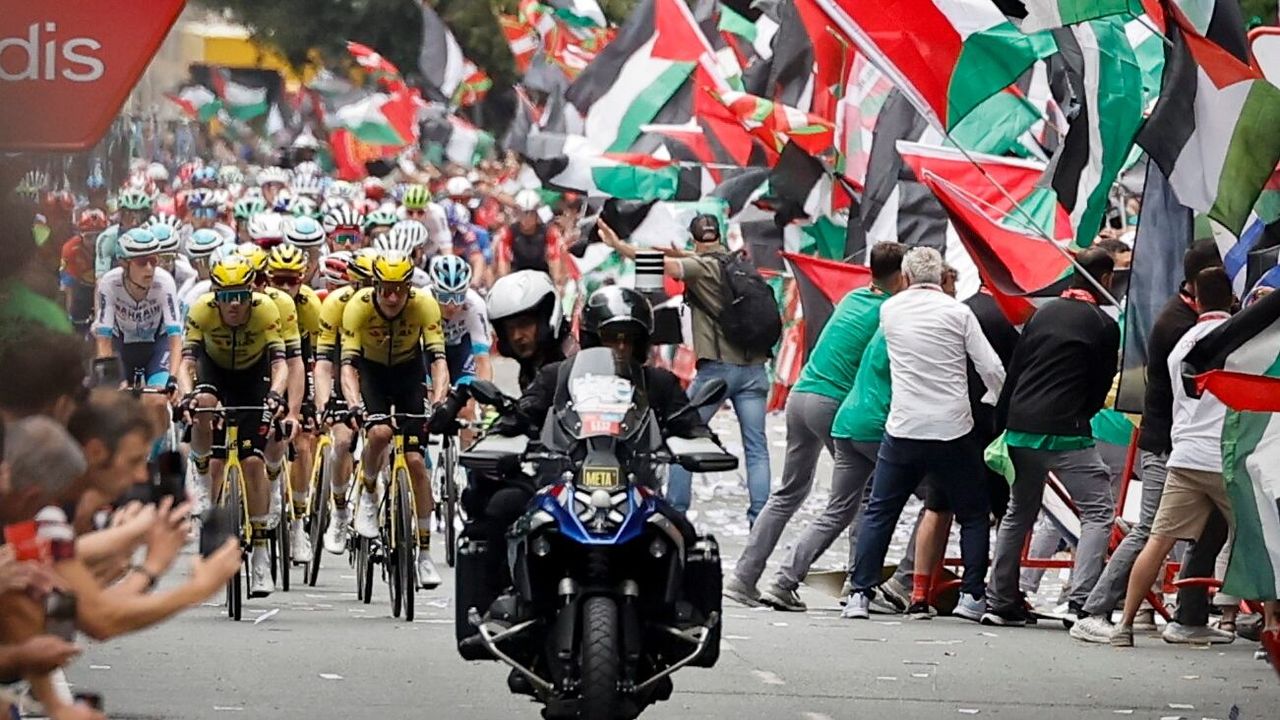 يسپانيا’نين ڭ پرستيژلي سپور ايتكينليكلريندن بيري اولان له وولته بيسيكلت تورو، بی ييل سيياسي پروتستولارله ‏گوندمه كلدي. فيليستين دستكچيلري، إیسرايلي بيسيكلت تاكيمينين ياريشه كاتيليميني پروتستو ايدە رك كوزركاه بويونجه فيليستين بايراكلاري اچتي و “سويكيريمي دوردورون” يازيلي پانكارتلار تاشيدي.
