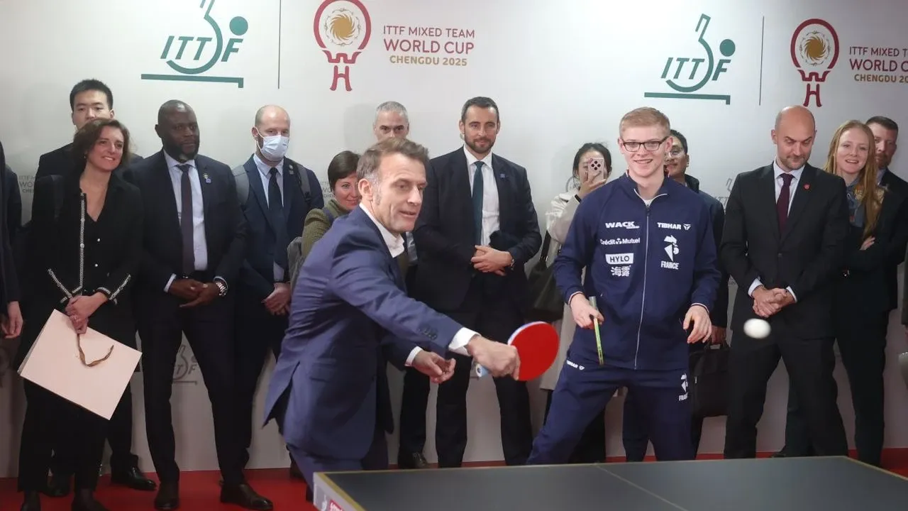 بولوشماده ماجرون هم چينلي هم ده فرانسيز سپورجولارله سمبوليك بير ماسه تنيسي ماچي اويناياراك ديكات چكيجی بير ديپلوماتيك ژست كرچكلشتيردي.