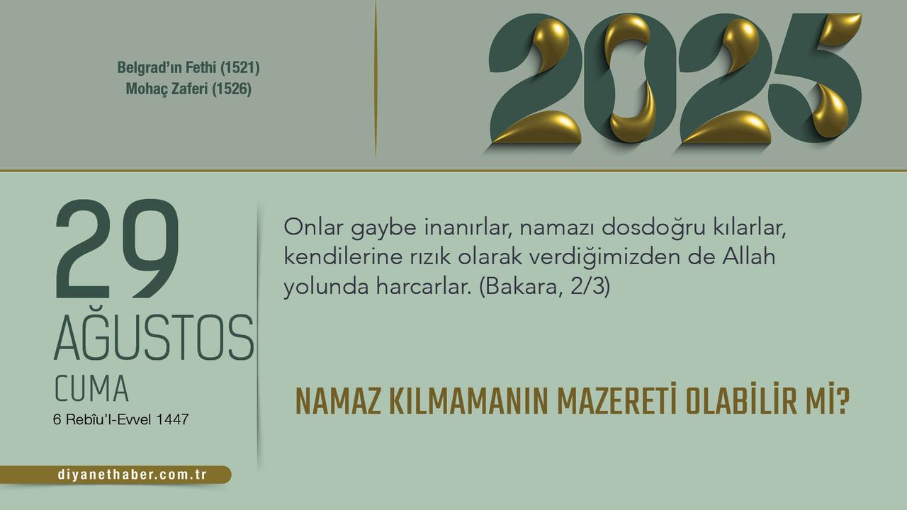 ناماز، دينيميزين ايمرتيگي إیبادتلرين ڭ ونمليسيدير. اقيلي و ايركنليك چاگينه اولاشان هر موسلومان’ين ناماز كيلماسي فارزدير. ناماز ترك ايديلمز و اويوياكالماك، اونوتماك و باش إیله ده اولسه إیمه إیله كيلاماياجاك كادار هاسته اولماك كيبي مشری بير مازرت بولونماديكچه كازايه بيراكيلاماز. مشكولييتي چوك اولماك، ايلنين كچيميني ساگلاماك إیچين چاليشماك و يولجولق كيبي دوروملار نامازين ايرتلنمسي إیچين وزور ساييلماز. إیشورنين وايه إیش يريندكي سوروملولارين ناماز كيلماك إیستاين چاليشانلارينه جمعە و واكيت نامازلاريني كيلابيلمه إیمكانيني ساگلاماسي كركير. ناماز إیچين إیزين إیستنديگي هالده إیزين وريلممسينه راگمن كيلينان ناماز كچرليدير. ناماز كيلمه إیمكاني بولونمايان بير يرده چاليشان كيمسنين بی إیمكاني بولابيلگي بير إیش اراماسي اويكون اولور. اراماسينه راگمن بولامازسا; وگله إیله إیكيندييي، وگله وايه إیكيندي واكتيند; اقشام إیله ياتسييي ده اقشام وايه ياتسي واكتينده م ايدرك/بيرلشتيرە رك كيلابيلير. فاكات بونون بير زارورت هوكمی اولدیگی اونوتولماماليدير.