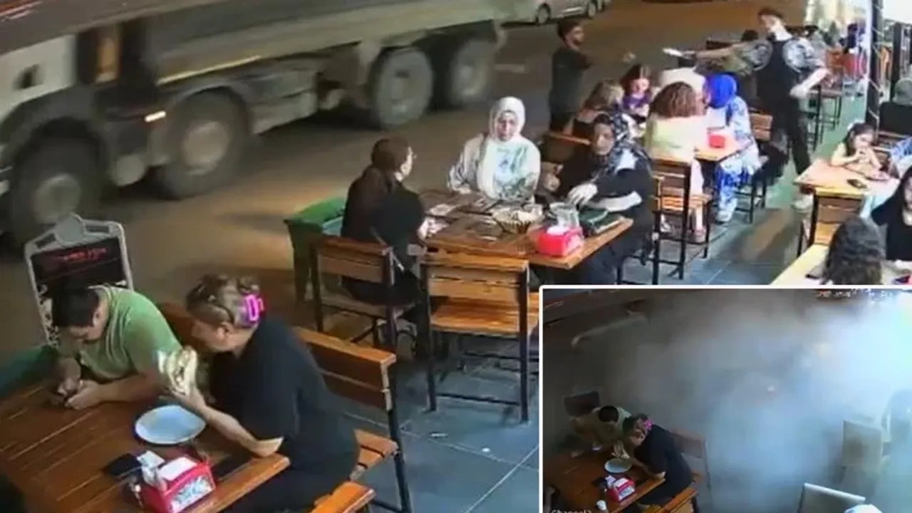 موشتريلر بويوك كوركويله رستوراندان كنديني ديشاري اتي. ياشانان او انلار إیسه رستورانين كوونليك كامرالارينه انبين يانسيدي.