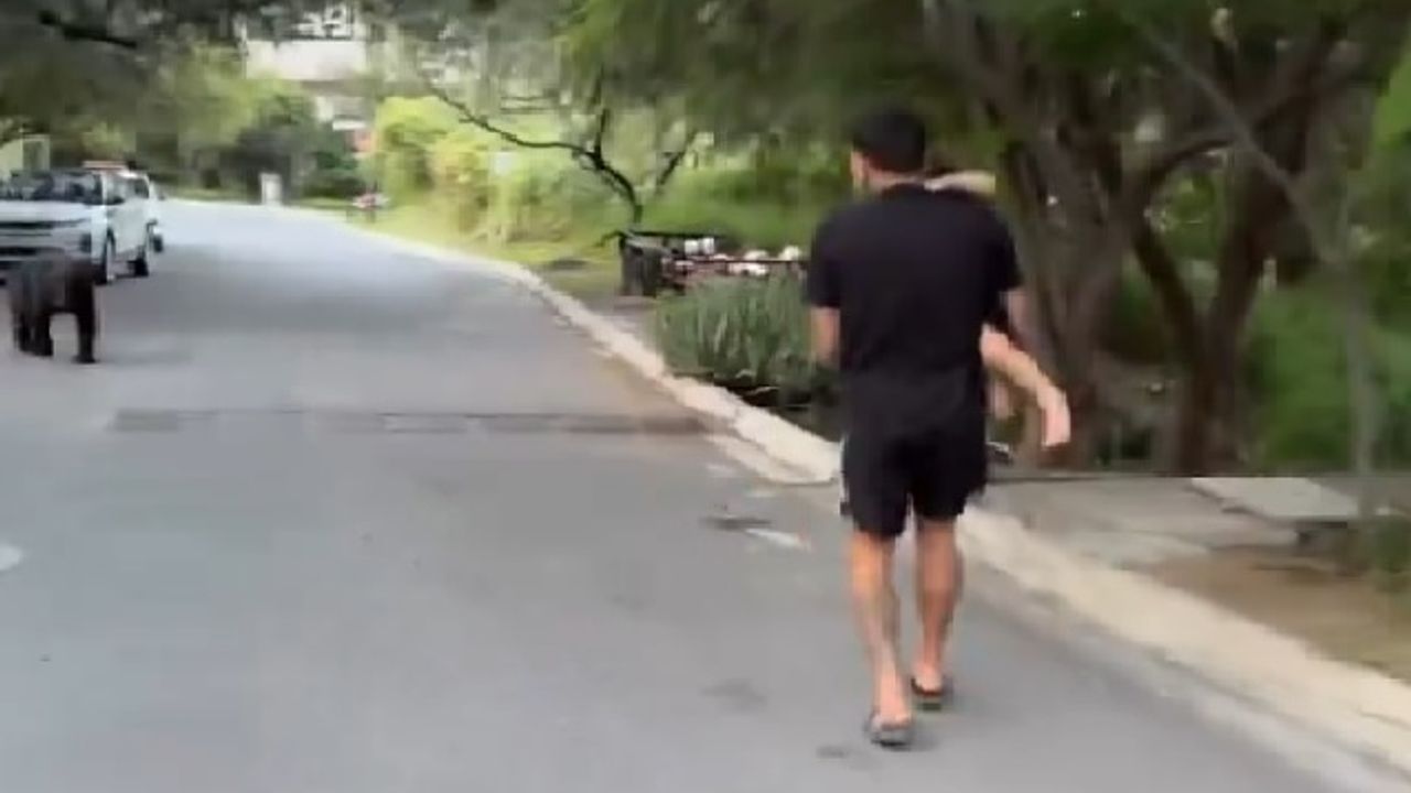 چوجوگی كوجاگيندايكن ايوينه ياكلاشان ارژانتينلي فوتبولجو، مونتراي كنتيندكي ايوينين ونونده بير ايييله كارشيلاشتي. ايي، اويونجونون اوزرينه دوگری كليركن ييلديز فوتبولجو، كولە رك اييدان اوزاكلاشتي. انكل جوري’نين چوجوگی إیله اييدان اوزاكلاشتيگي انلار كامرالاره يانسيركن بی انلار سوسيال مدياده إیلكي چكتي.