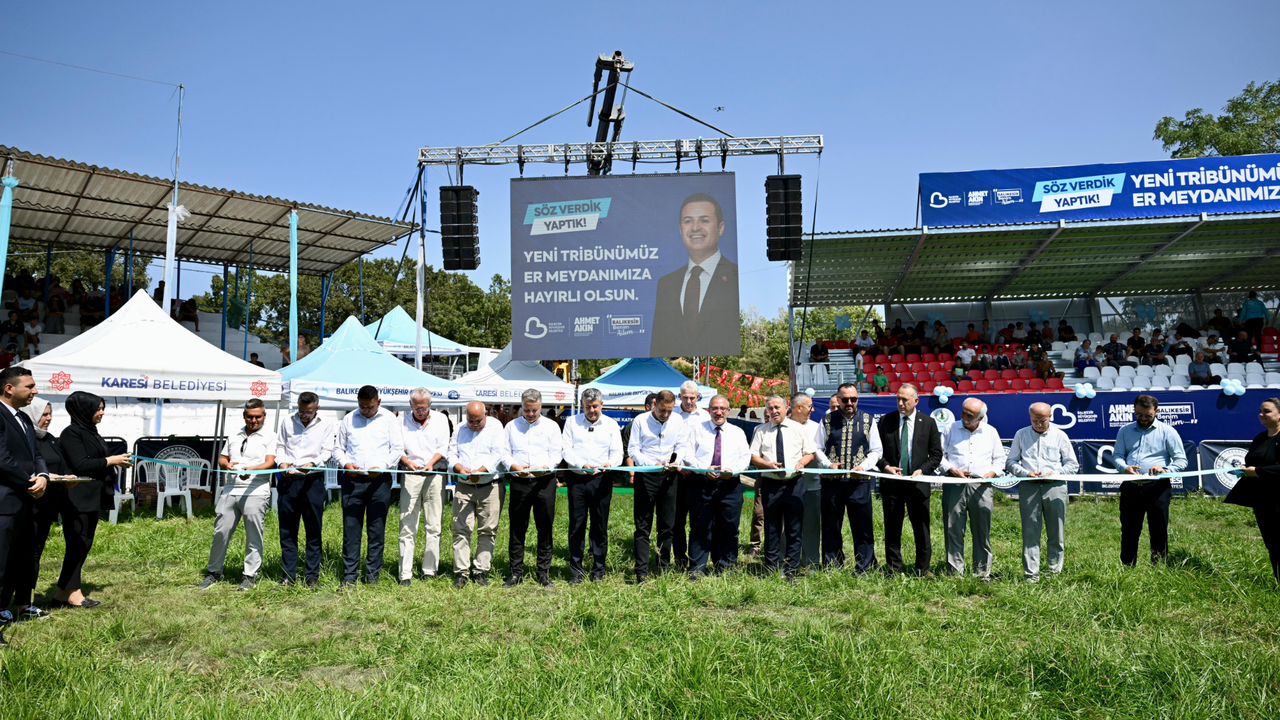 باليكسير بويوكشهير بلدييه باشقاني احمد اقين’ين سوزونی ورديگي كورتدرلي اير مايداني’نين يني تريبون هيزمته اچيلدي. كورشسورلردن كلن يوگون تالپلر اوزرينه كچتيگيميز ييل اير مايدانينه يني تريبون كازانديراجاگينين سوزونی ورن باليكسير بويوكشهير بلدييه باشقاني احمد اقين، ٦٥. كورتدرلي مهمت پهليوان ياگلي كورشلري’نين إیلك گونونده يني تريبونی هيزمته اچتي.