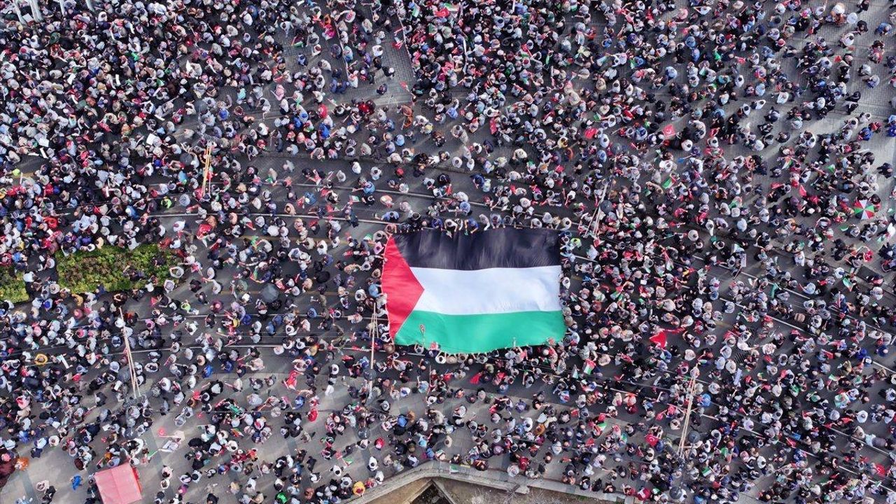 اسلامبول’ده اياسوفيا-ي كبير جاميي ونونده بير ارايه كلن كالاباليك، كازز’يه دوگری يوله چيكان، ٢٢ اولكدن ١٤٦ كاتيليمجينين بولوندوگی ١١ كميليك فيلويله دايانيشمه كوسترمك إیچين ايمينونو’نه يورودو. كاتيليمجيلار، “كاتيل إیسرايل فيليستين’دن دفول”، “كازز’يه سلام، ديرنيشه دوام”، “نهيردن دڭزه وزكور فيليستين”، “موسلومان اويومه كاردشينه ساهيپ چيك” كيبي سلوكانلار اتي. “بن كازز’دكي چوجوكلار إیچين يورويوروم، سن نه ياپييورسون؟”، “يوری كاردشيم اياگينه كودوس كوجی كلسين” و “زولمون اولدیگی يرده تارافسيز كالينماز” كيبي مساژلار تاشييان دوويز و پانكارتلارله يورويوش رنكلي كورونتولره ساهنه اولدی. ايتكينليك سونونده ايمينونی مايداني’نده كونوشمالار ياپيلماسي پلانلانييور.