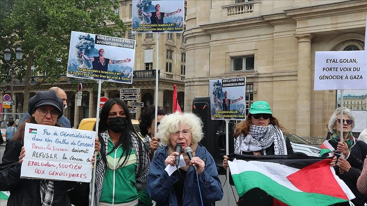 فيليستين دستكچيلري، پاريس’ته كولتور باكانليگي بيناسي ياكينلارينده پالايس-رويال مايداني’نده بير ارايه كلدي. كوستريجیلر “كاززه تامامن يوق ايديلملي، اوراده تك بير كيشي بيله بيراكيلمامالي، اونلار سادجه هايوان” سوزلرييله هاتيرلانان إیسرايلي شاركيجي كولان’ين، ٢٠ مایس’ته فرانسا’ده دوزنلنە جك كونسرينين إیپتال ايديلمسيني إیستدي. كولان’ين إیسرايل’ين كازز’دكي سويكيريمينه دستك ورديگيني ساووناراك، شاركيجينين فرانسيز توپراكلارينه كيريشينه إیزين وريلممسيني تالپ ايدن كوستريجیلر، بی كونسر ندنييله فرانسه كولتور باكاني راتشيده داتي’يه ده تپكي كوستردي. كوستريجیلر ايلريند، “سويكيريمجي شاركيجي اييال كولان سينيرلاريميزدان ديشاري” و “آطەلت إیچين هيزليجه إیسرايل’ه كارشي ياپتيريملار اويكولانسين” يازيلي افيشلر تاشيدي. بازي اييلمجیلر، كوسترييه اوزرينده “سوچ اورتاگي” يازيسي اولان فرانسه جمهورباشقاني ايمانول ماجرون’ون فوتوگرافينين ير الديگي افيشلرله كاتيلدي. “بی هريف، فيليستين هوكينه اتيلان بومبالاري إیمزالييور” كوستريده كونوشان ايوروپالستين’ين باشقاني اوليويه زمور، كولتور باكاني داتي’نين، كولان’ين فرانسا’يه كليشينين ياساكلانماسينه يونليك تالپلره هنوز يانيت ورمديگيني بليرتي. زمور، سويكيريمه دستك ورن شاركيجي كولان’ين “كاززه هوكينين تامامن كاتلديلمسي كركتيگيني” سويلديگيني كايددرك، شاركيجي هاكينده “بی هريف، فيليستين هوكينه اتيلان بومبالاري إیمزالييور.” دیدی. كولان’ين، إیسرايل’ين اشيري ساگجي اولوسال كوونليك باكاني إیتامار بن-كوير’ين دوستی اولدیگونی بليرتن زمور، كولان’ين ساهنايه چيكاجاگي ايتكينليگي “وتانچ كونسري” اولاراك نيتلنديردي. “ونلار سويكيريمين شاركيجيلاري” كوسترييه اوزرينده اراپچه “ديرنيش” يازيلي كوپلرله كاتيلان ساراه تريف، فرانسا’يه كولتور كيسوسي آلتونده كلە رك سويكيريمه دستك ورن إیسرايليلره تپكي كوسترمك إیچين كوسترييه كاتيلديگيني سويلدي. تريف، كازز’ده سويكيريمي دستكلاين إیسرايلي شاركيجي و سپورجولار هاكينده “شاركي سويلويورلارميش. اويسه اونلار سويكيريمين شاركيجيلاري. اوليمپيياتلارداكي سپورجولار كيبي، اوردی كييافتلريني چيكاريپ، شورت كييە رك سپورجی اولدیلار. اويساكي هپسي سويكيريمجي. توريده ‘ينسان هاكلاري اولكسي’ اولان فرانسا’يه كلملرينه كارشيييز.” دگرلنديرمسينده بولوندو.