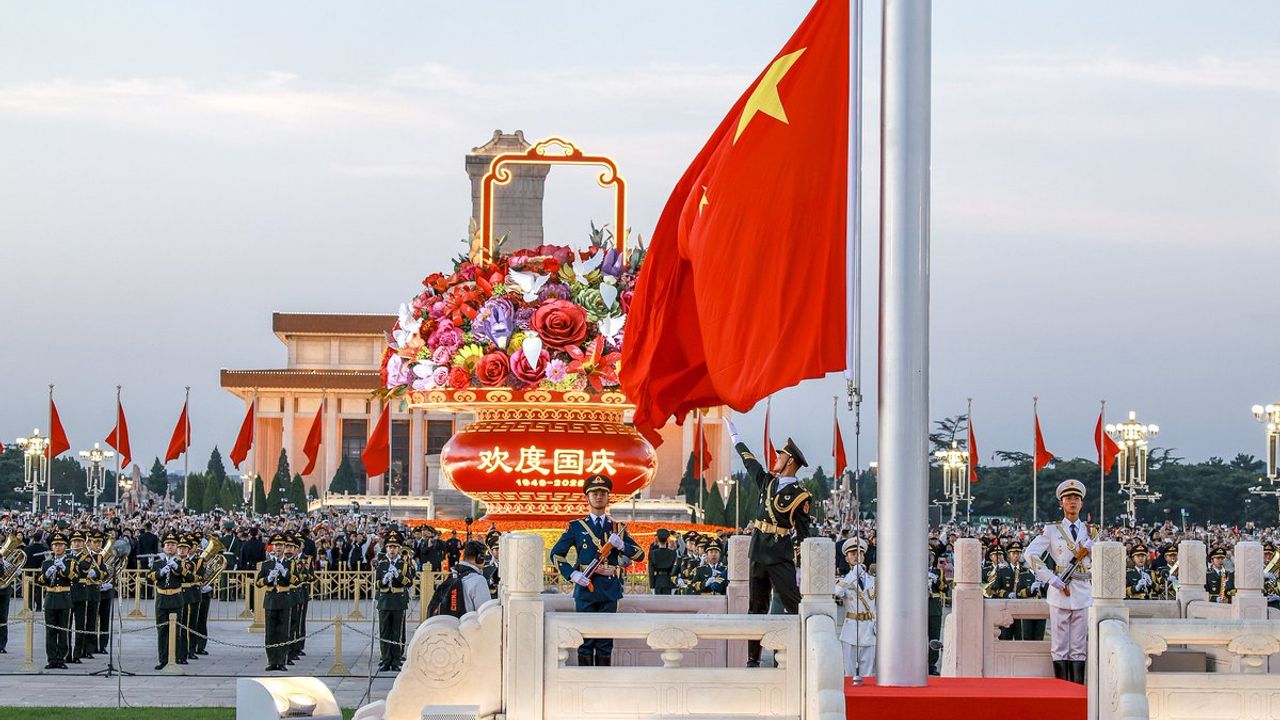 مايدانده چين هوك جمهورييتي’نين كوروجی ليدري ماو زدونك’ون پورترسينين بولوندوگو، “ياساك شهير” اولاراك بيلينن ايسكي إیمپاراتورلق سارايي’نين كمرلي گوناي دوواري ايدينلاتيليركن مايدانين اورتاسينه اولوسال گون’ه وزل دو چيچك بوكتي يرلشتيريلدي.