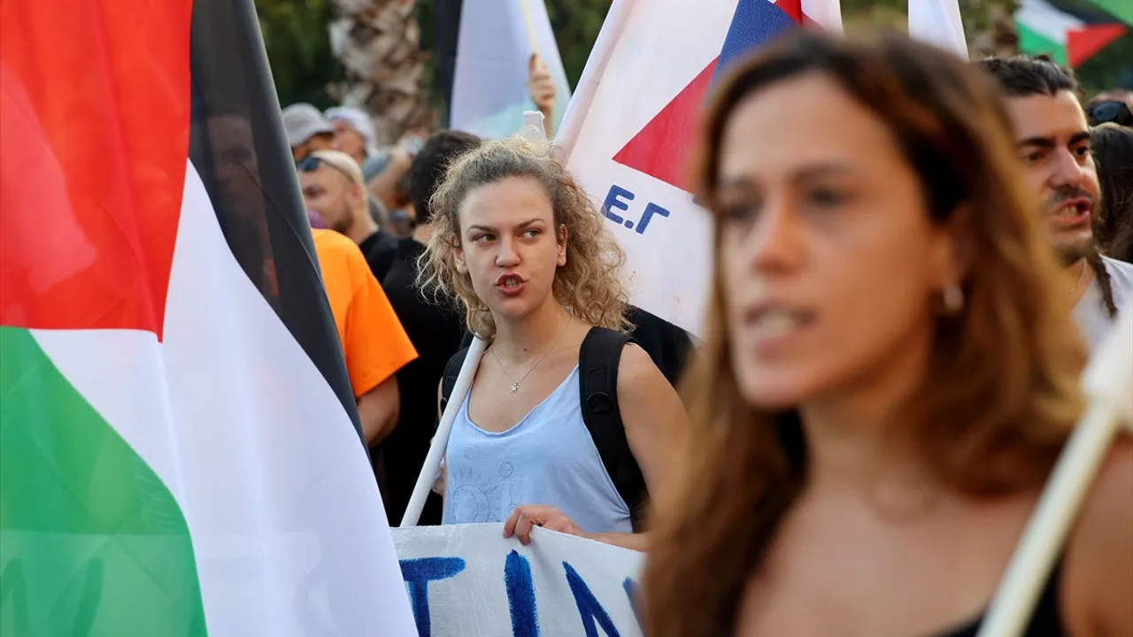 يونانيستان كومونيست پارتيسي (ك)، سول كروپلار، سنديكالار و اقتيويستلردن اولوشان ياكلاشيك ٥٠٠ كيشيليك كروپ، پيره ليماني’نده إیسرايل’ه ايت كمييي پروتستو ايتي. كوستريجیلر، كميدكي يولجولارين قرەيه چيكماسيني اينكلمك اماجييله ليمانده توپلاندي.
