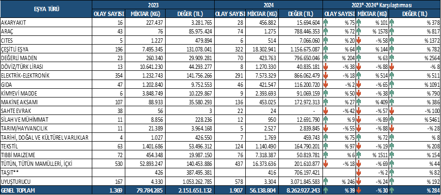 كومروك موهافازه بيريملرين، ٢٠٢٤ ييلي إیلك ٣ ايينده يوروتولن باشاريلي اوپراسيونلار نتيسيند، بير ونكي ييلين ايني دونمينه كيياسله ياكلاشيك % ٣٠٠ ارتيشله ٨ ميليار تورك ليراسي دگرينده ياساديشي تيجاري ايشيه و اويوشتوروجی ماده ياكالاماسي كرچكلشتيريلدي.
